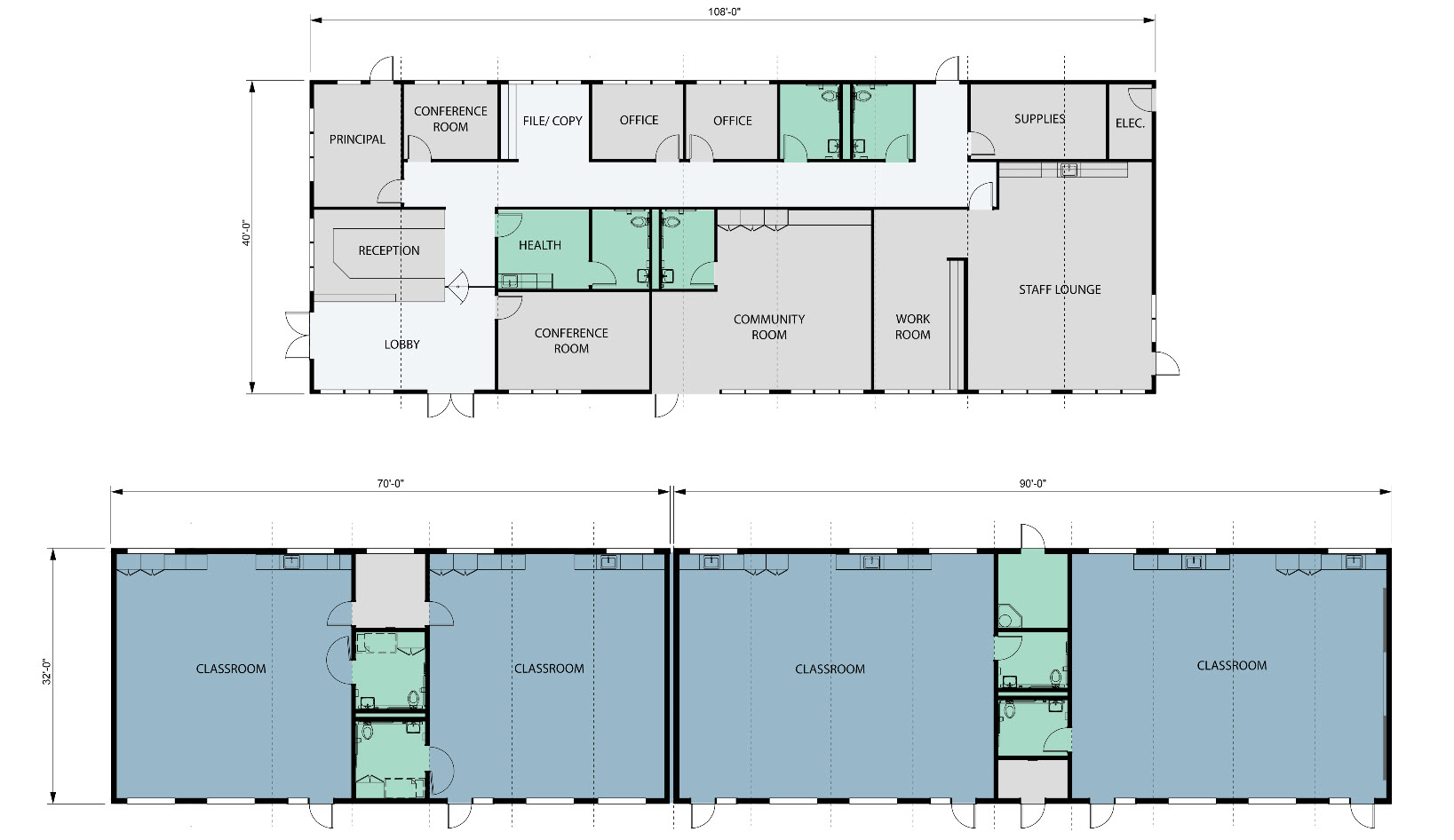 The combined 20,640 square feet of new space is constructed from high quality, eco-friendly materials. The buildings are both healthy and energy efficient, with elevated ceilings and clerestory windows that maximize daylight harvesting. High performance HVAC systems circulate fresh, filtered air throughout the adaptable space. Keeping as much of the original landscaping intact, the Daylight Classrooms wrap around a centralized courtyard, providing indoor/outdoor learning opportunities for all ages.